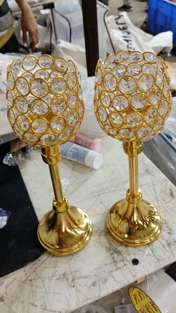 Crystal Brass Light Candle Holder Stand 12 Inches Pack Of 2