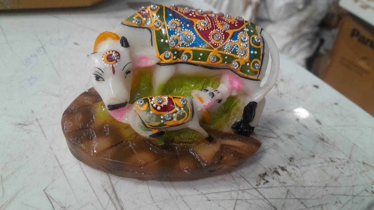 Decorative Marble Kamdhenu Cow And Calf Big Handcrafted Statue 6 Inch