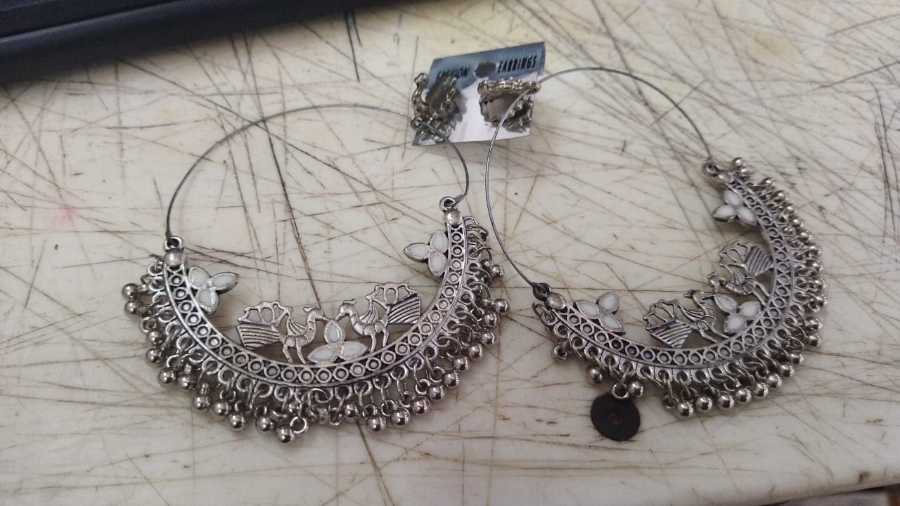 Designer Oxidized Hoop Earrings With Floral Detailing For Women