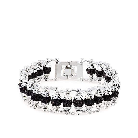 Divine Hindu Unisex Adult Premium Silver Plated Black Rudraksha Chain Bracelet 5 Mukhi Original 24 Black Beads