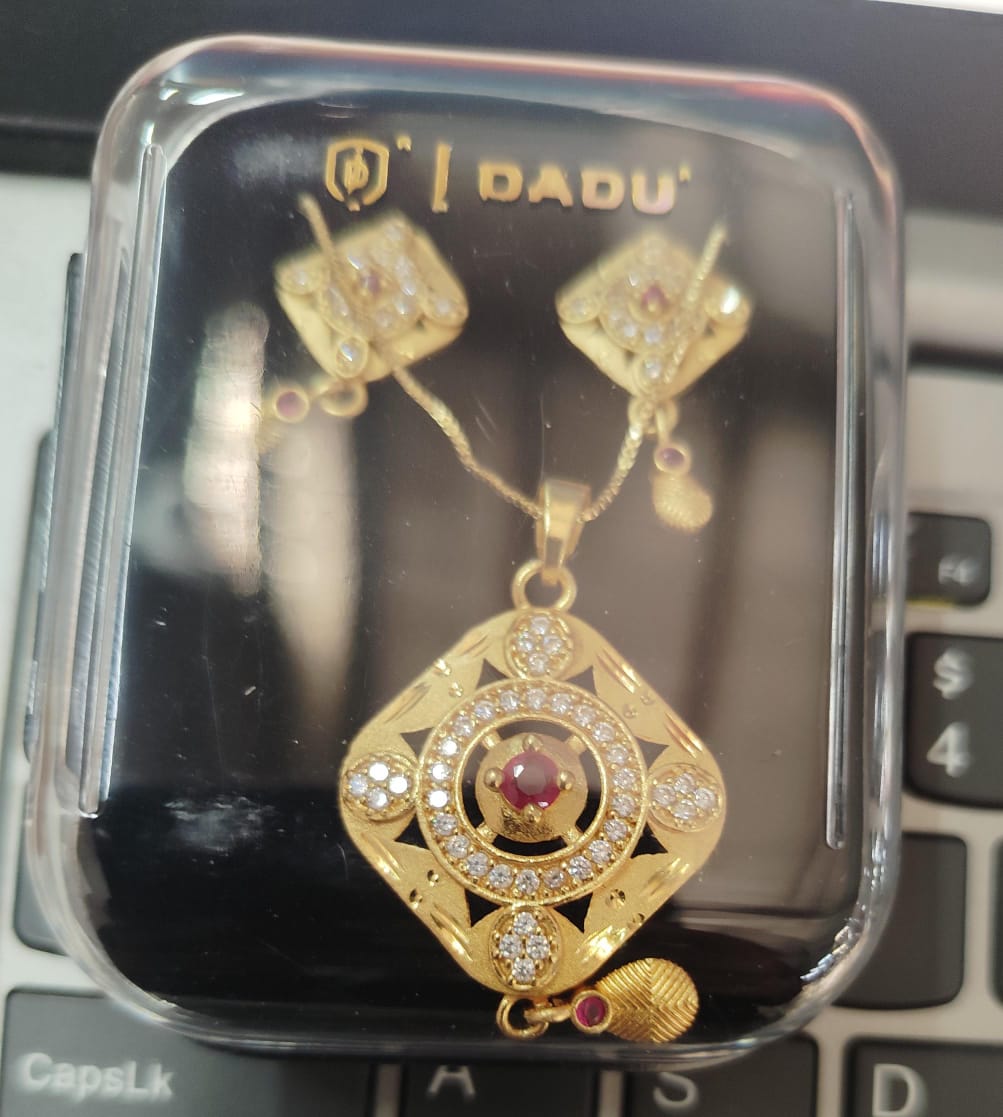 Dj Dadu Gold And White Elegant Leaf Motif Gold Plated Pendant Set With Earrings For Women
