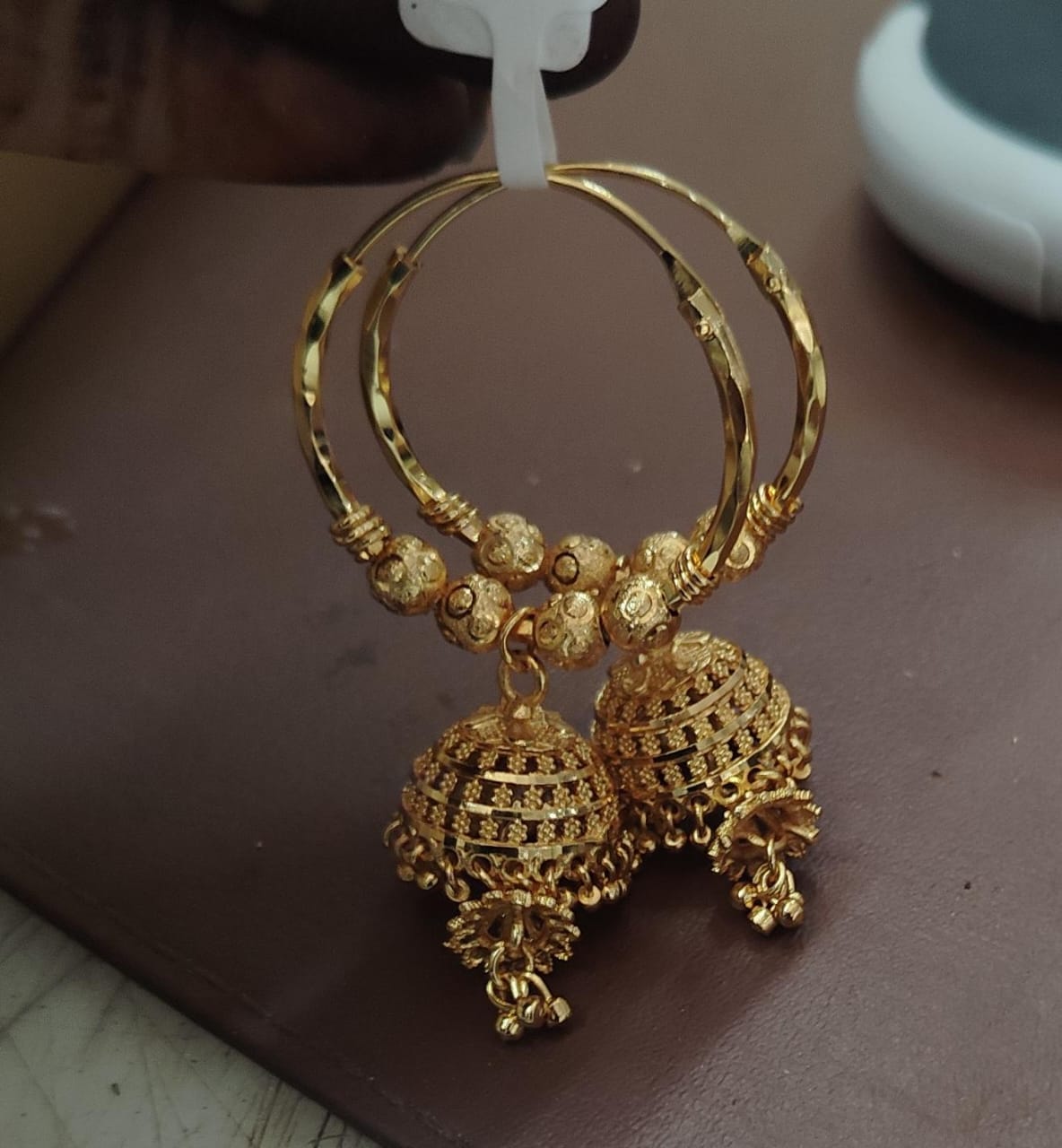 Dj Dadu Gold Colour Earrings Jhumka Screw Back Beads Women Girls Brass Jhumki Earring