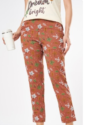 Dreamz Tan Printed All Over Full Length Sleepwear Women Relaxed Fit Pyjamas SIze 32 brown