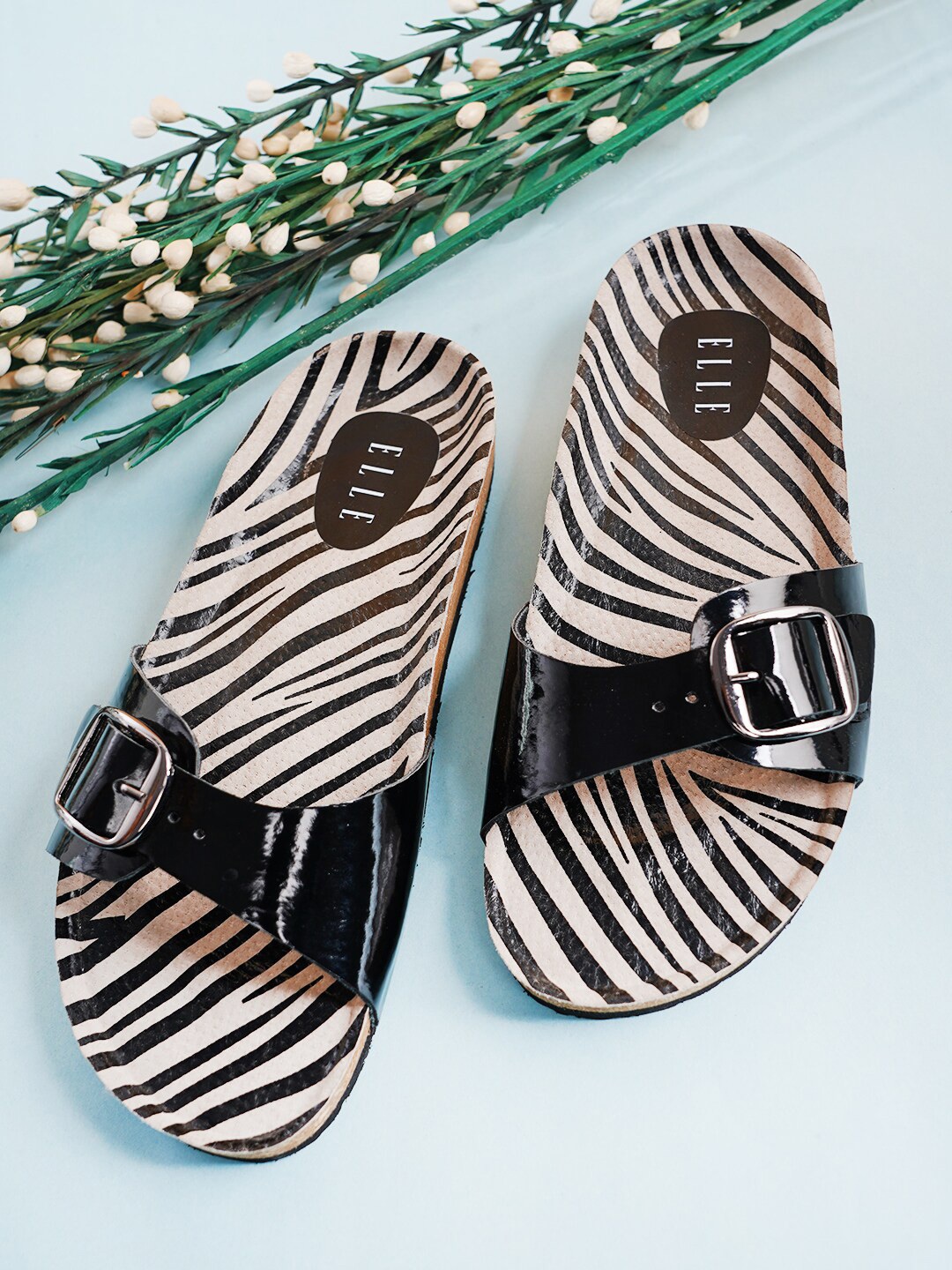 ELLE Women Leather Buckles Comfort Flats Black Colour Free Size