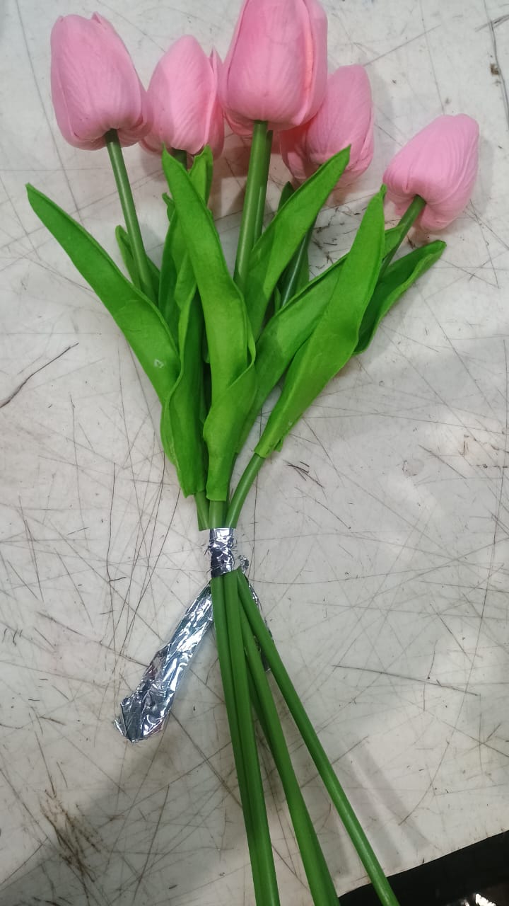Fabric Silk Artificial Tulip Flower Sticks Set Of 6