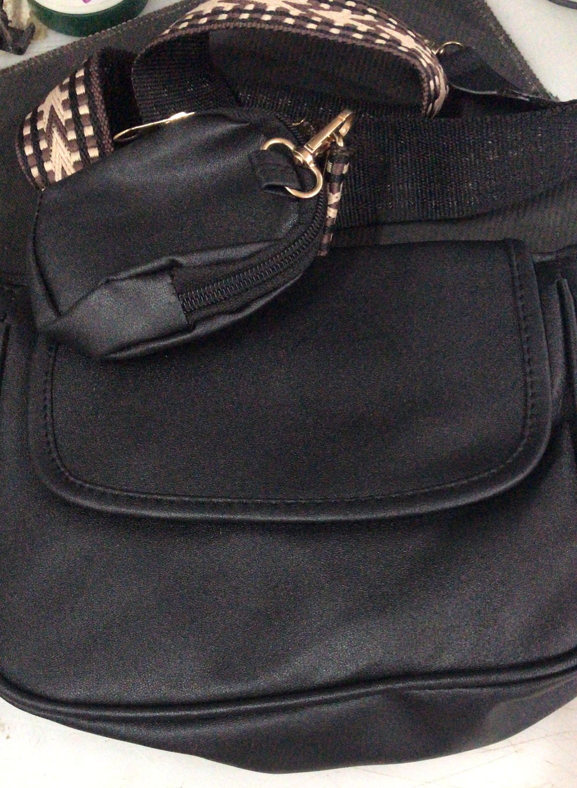 Fancy Black Leather Handbag With Mini Wallet For Women 1Pc