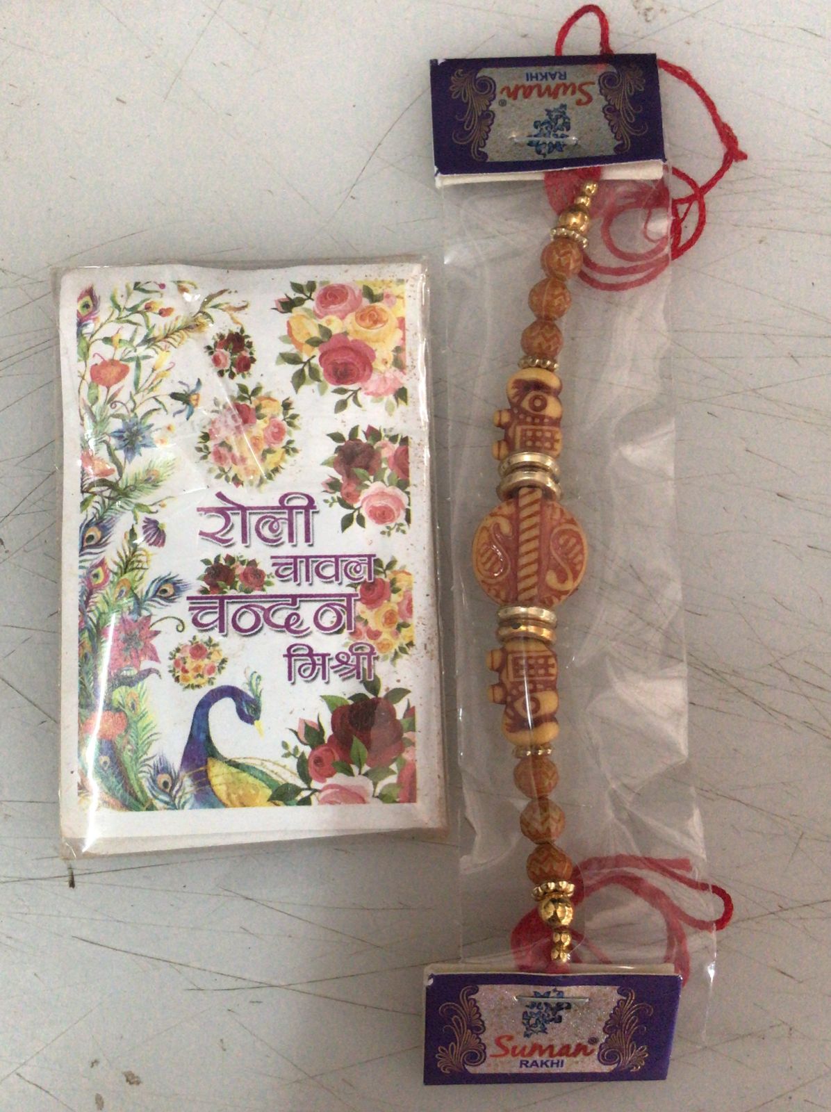 Fancy Rakhi For Brother 1Pc With Rice Mishri