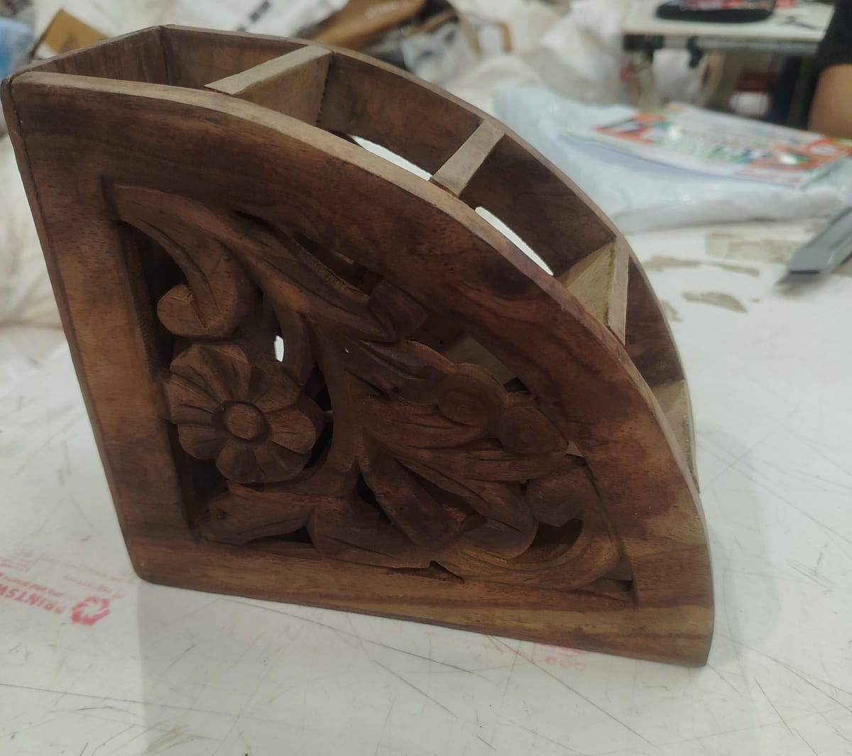 Fine Wood Flower Design Remote Control Storage Holder Rack Multi Purpose 5 Slot Storage
