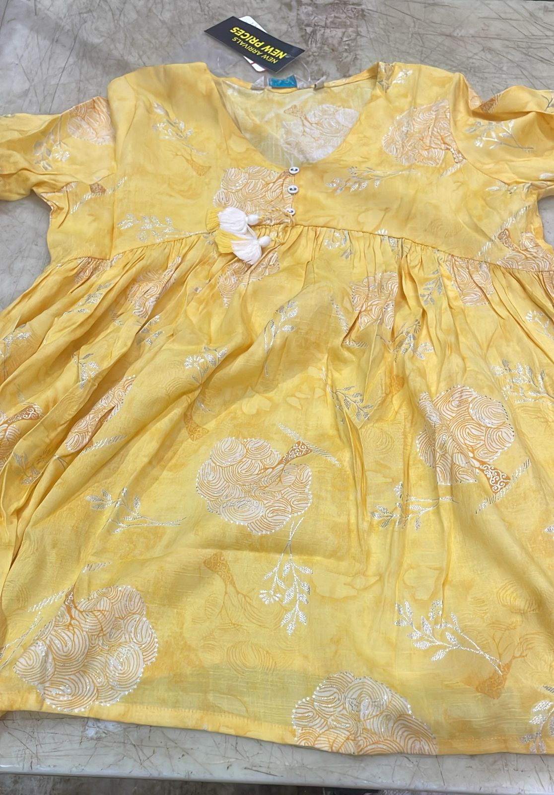 Floral Print Bell Sleeve Fit & Flare Dress Yellow Colour Size Large