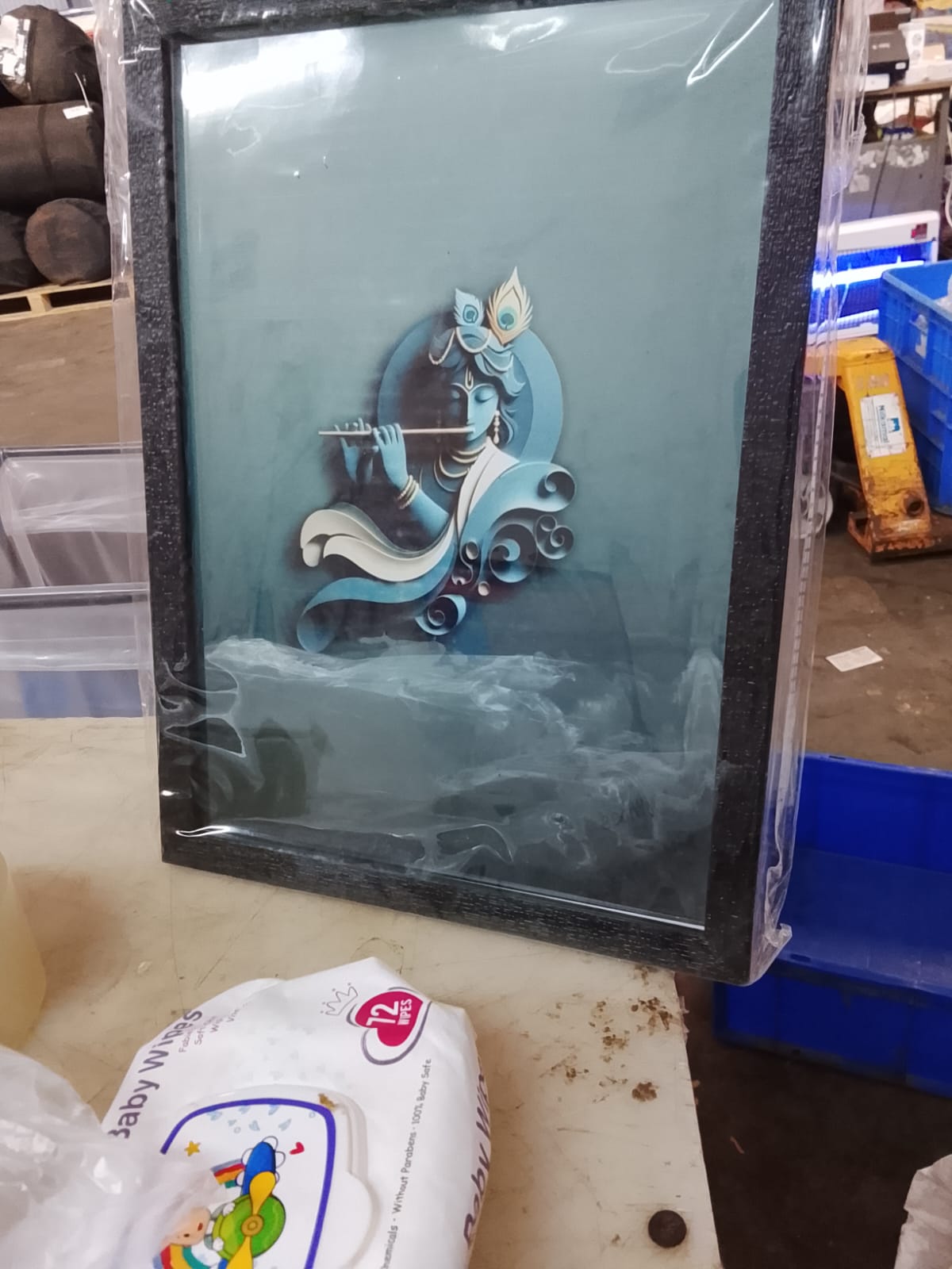 Framed Painting Of The Hindu Deity Krishna Playing The Flute