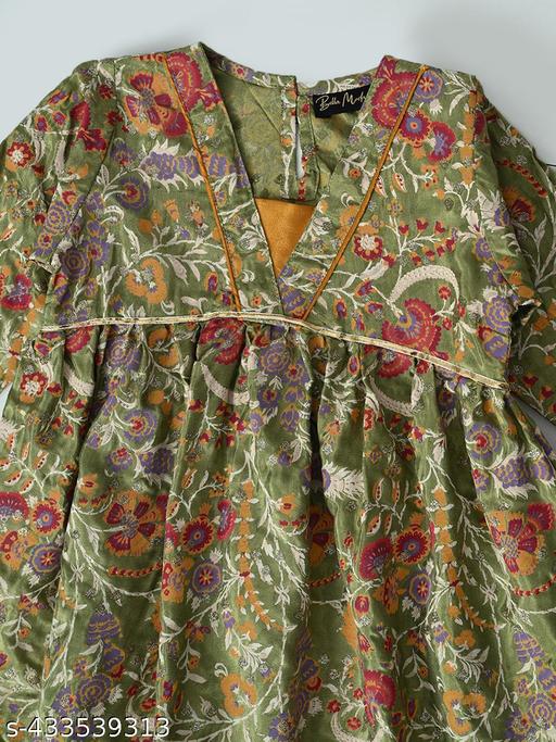 fusion Beautiful Printed Kurti Set With Contrast Bottom size XS colour green