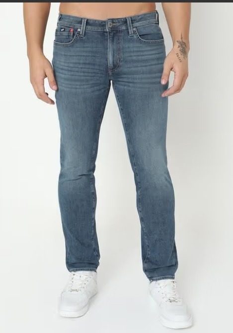 Gas Albert Slim Fit Solid Denim Size 42 Mid Blue Color
