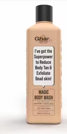 Ghar Magic De Tan Exfoliating Body Wash with Saffron Lactic Acid 250ml