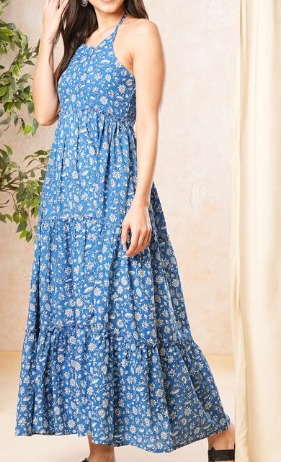 GLOBUS Women Floral Print Halter Neck Cotton A Line Casual Dress KURTA SET size L COLOUR PURPLE