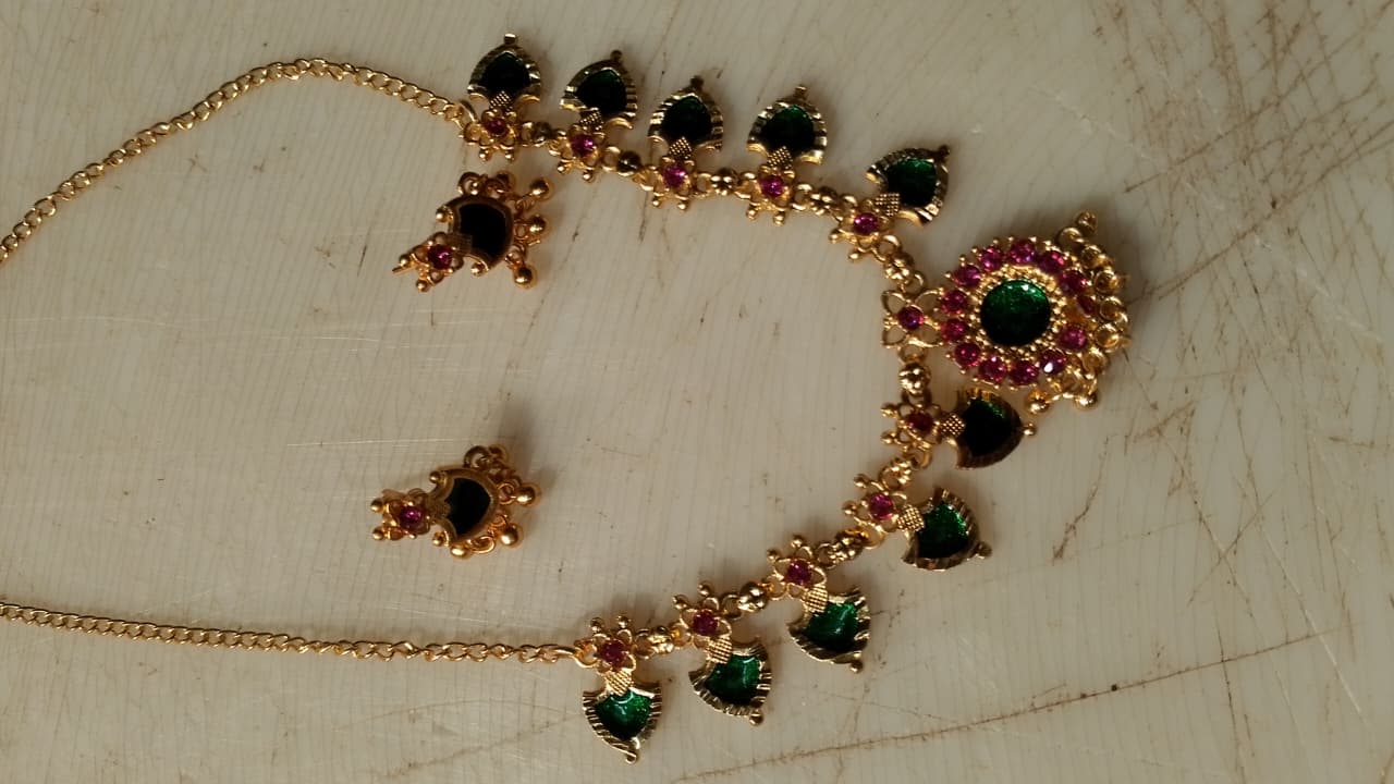 Gold Plated Green And Red Color Necklace For Women