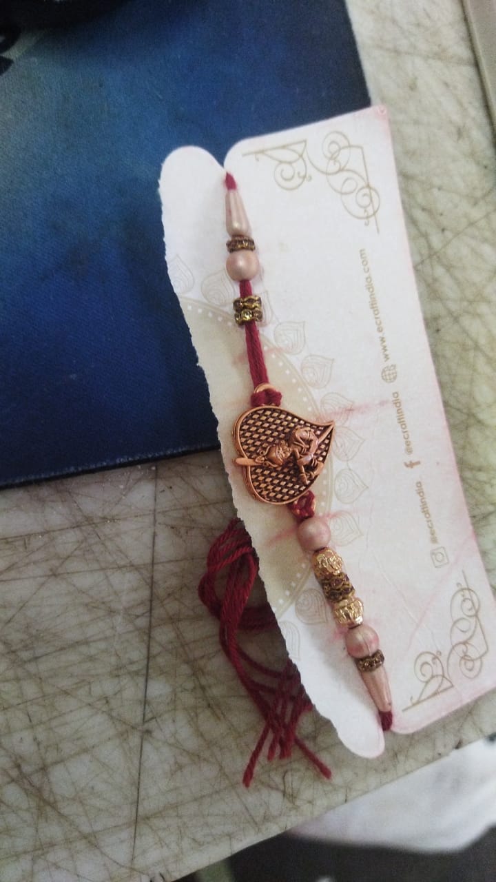 Golden And Red Color Krishna Design Rakhi