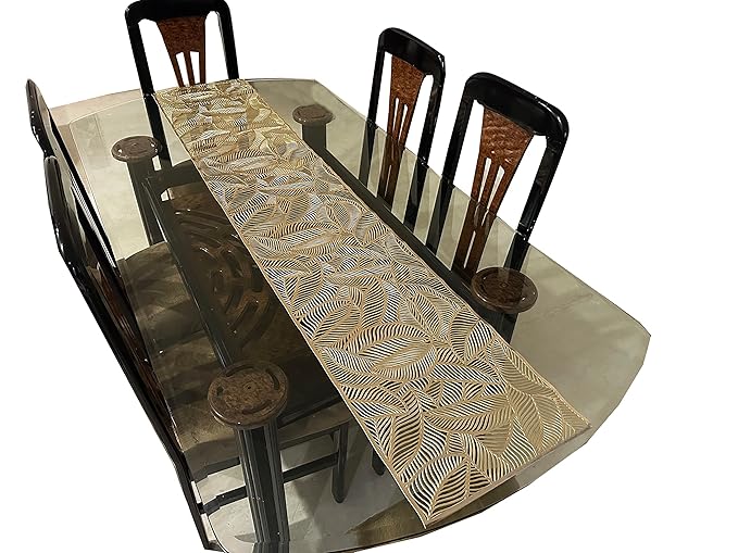 Golden Pvc Leaf Design Heat Resistant Table Runner For Centre Dining Table Gold 35Cm