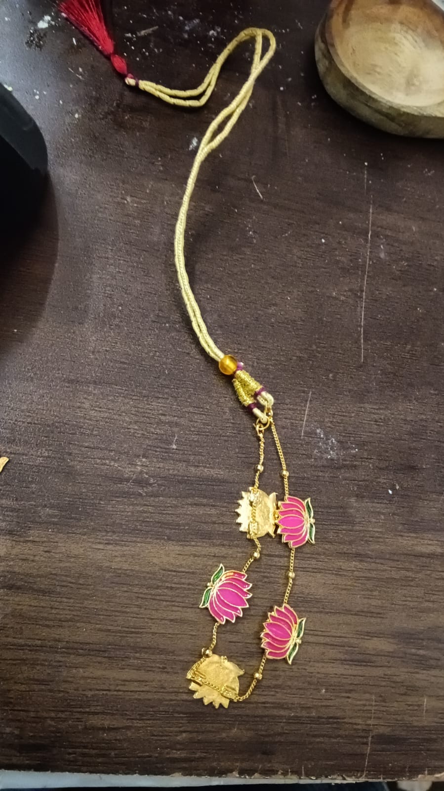 GoldPlated Lotus Design Choker Necklace And Earring Set Pink And Green Enamel