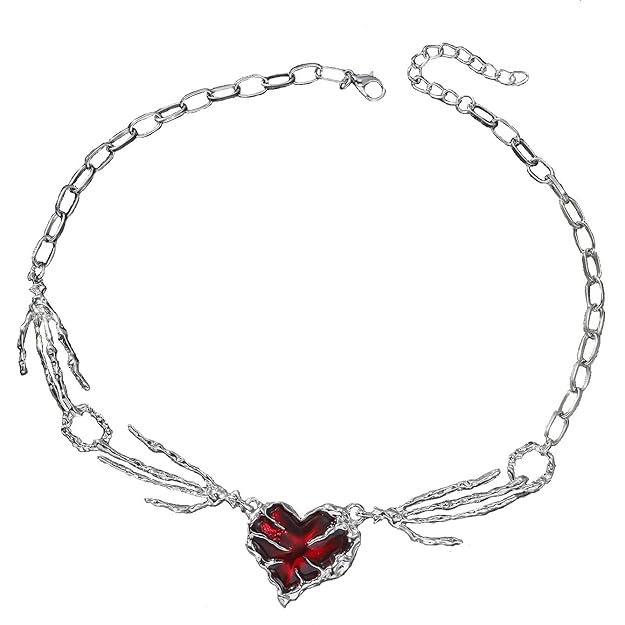 Gopher Gothic Heart Necklace Skeleton Hand Red Heart Necklace