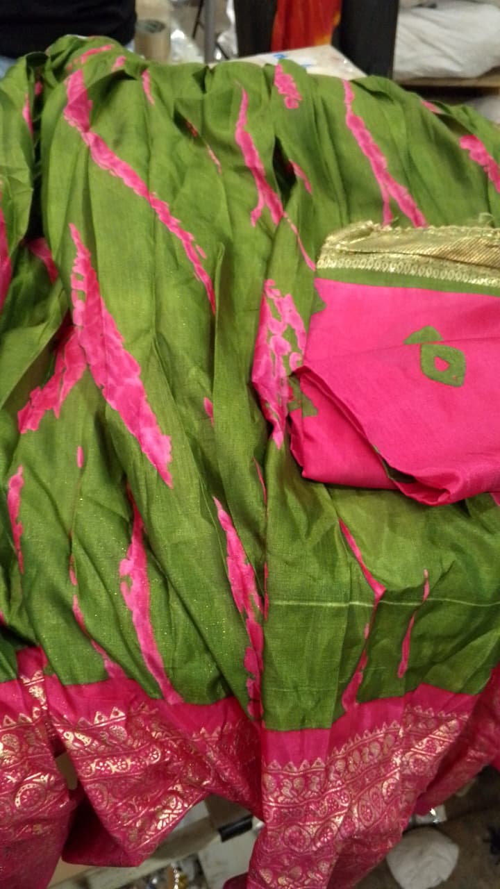 Green And Pink Printed Unstitched Lehenga With Dupatta