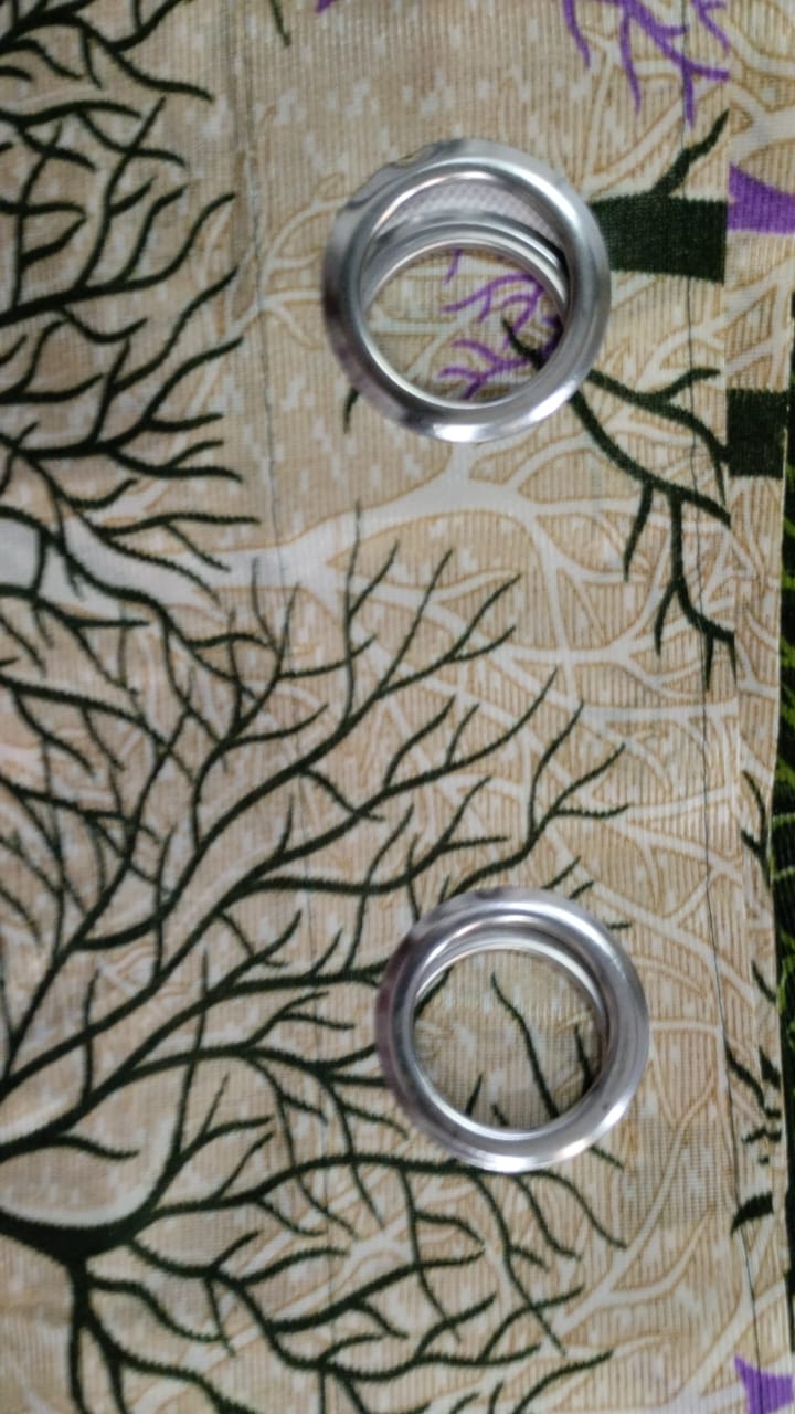 Green Polyester Eyelet Designer Printed Curtains Pack Of 2