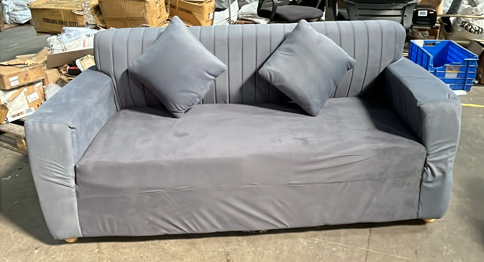 Grey Colour Velvet Fabric 3 Seater Sofa