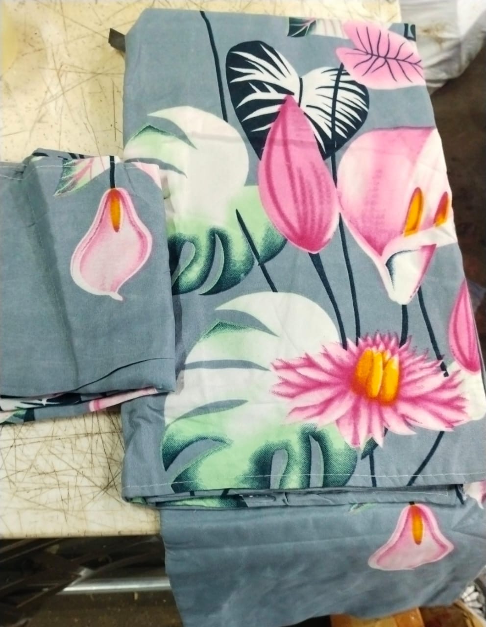 Grey Printed Colour Double Bed Sheet With Cushion Cover 2Pcs