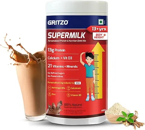 Gritzo Supermilk Height 13 Plus Y Boys 13G Protein Powder Double Chocolate 400Gm