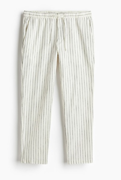 H And M Regular Fit Linen Blend Trousers For Men White Size Eur M