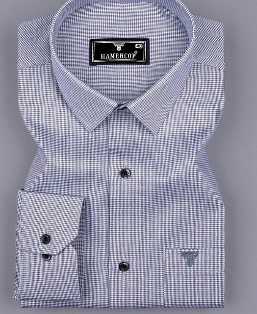 HAMERCOP Tropsin Gray Houndstooth Dobby Check Premium Giza Shirt Coloue Light Blue Size 40