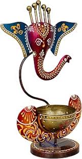 Hand Painted Ganesha Tea Light Candle Holder Metal Multi Colour Tabletop Diya Stand