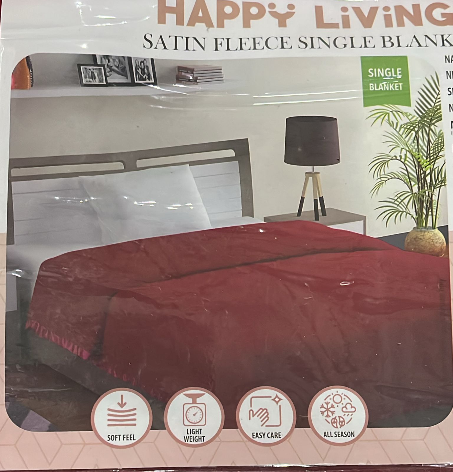 Happy Living Satin Fleece Single Blanket Red Colour Size 1 Point 50M 2 Point 20M