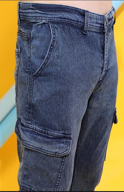 Highlander Mens Blue Slim Fit Cargo Jeans 32 Size