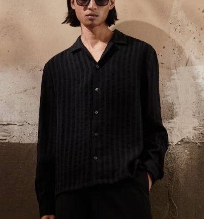 Hm Men Black Colour Regular Fit Long Sleeve Resort Shirt Size Xl