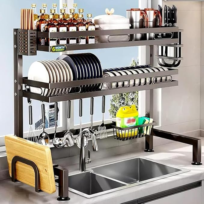IBELL Over Sink Dish Rack for Kitchen Bartan Stand for Drying Carbon Steel 2 Layer Black Colour