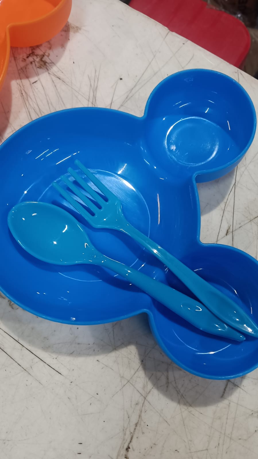 Imegaz Unbreakable Mickey Shaped Shaped Kids Snack Sectioned Plate Kids Blue