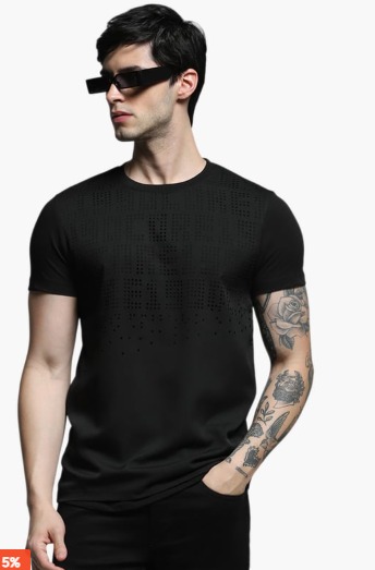 JACK and JONES Jack and Jones Black Oversized Round Neck Textured T Shirt size L