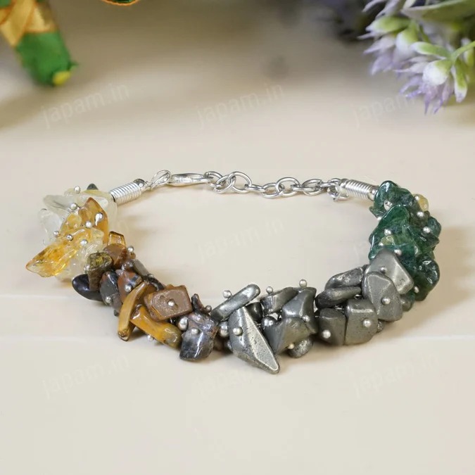 JAPAN Money Magnet Splash Bracelet with Pyrite Tiger Eye Citrine Aventurine Beads