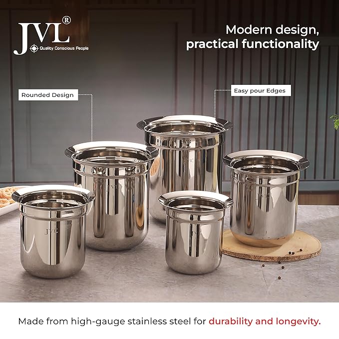 JVL Classicware Stainless Steel Gunj Multi Purpose Storage Serving Container 5 pcs silver colour