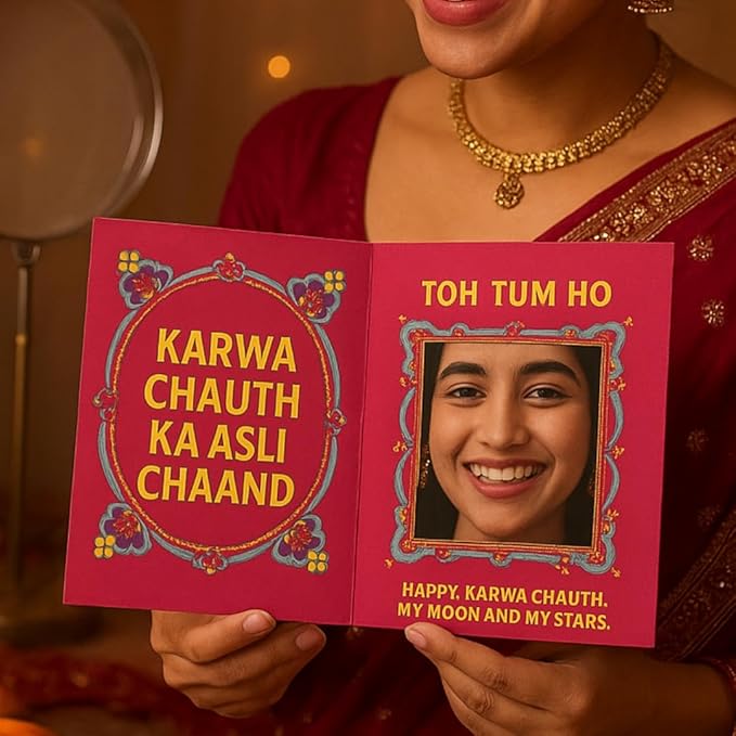 Karwa Chauth Greeting Card With Mirror Karwa Chauth Ka Asli Chaand