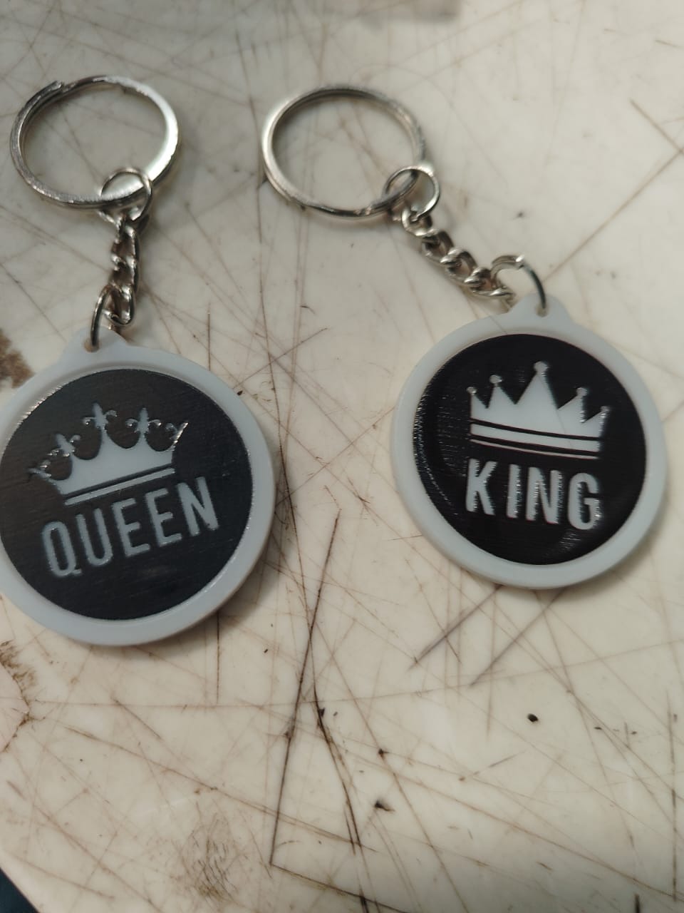 Keychain Round Printed Couple Keychains King Queen Set Of 2
