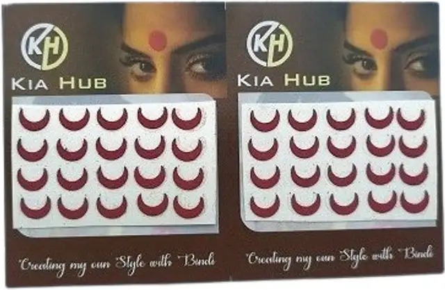 Kia Hub Traditional Half Moon Bindi Women Maroon Pack Of 2