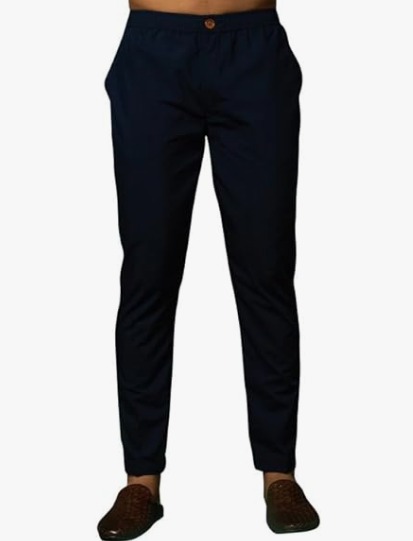 KISAH Mens Trouser Cotton Blend Solid Dyed Navy Blue Trouser Pant for Men SIZE M