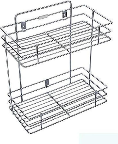Kitchen Rack Steel Double Layer Wall Mounted Kitchen Rack Kitchen Accessories Organizer Stainless Steel Wall Shelf