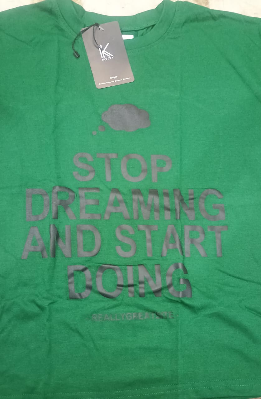 Kotty Women Green Typography Printed Oversized T Shirt Size L