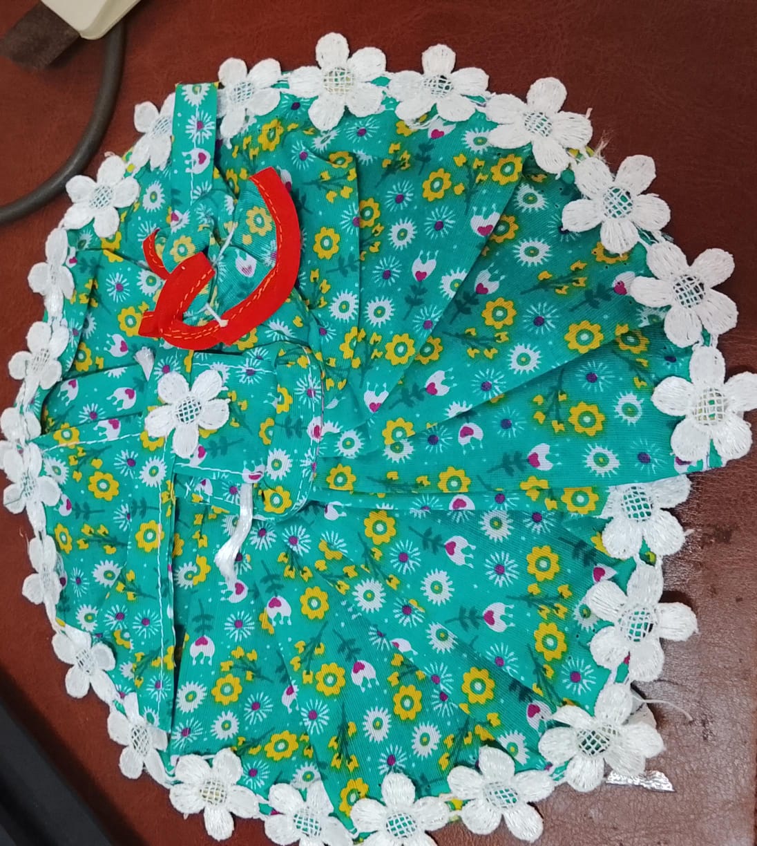 Laddu Gopal Green White Printed Cotton Dress Size 2