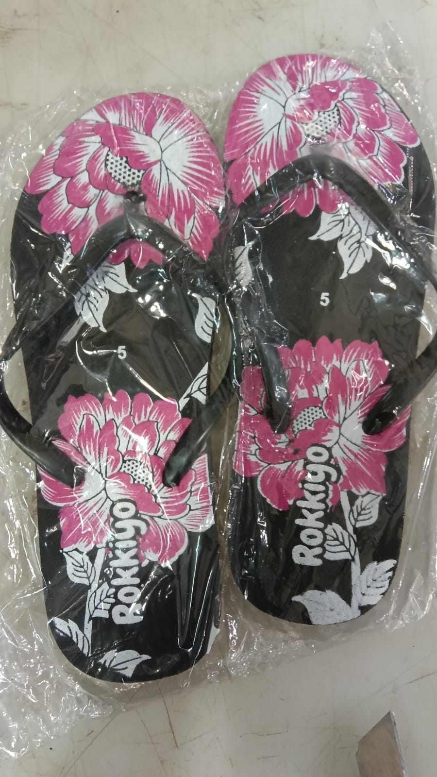 Ladies Slippers Chappal Black And Flower Size 5