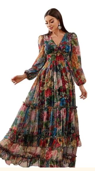 LADILA ENTERPRISE Women Floral Print V Neck Tiered Dress MULTICOLOUR Size S