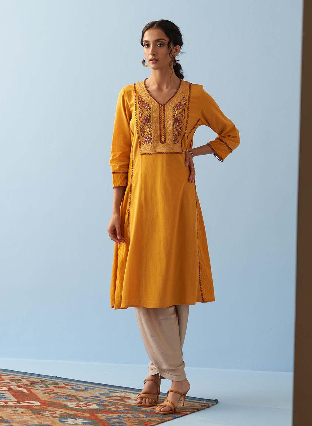 Lakshita Women Yellow Long Flared Embroidered ALine Kurta Size 3X