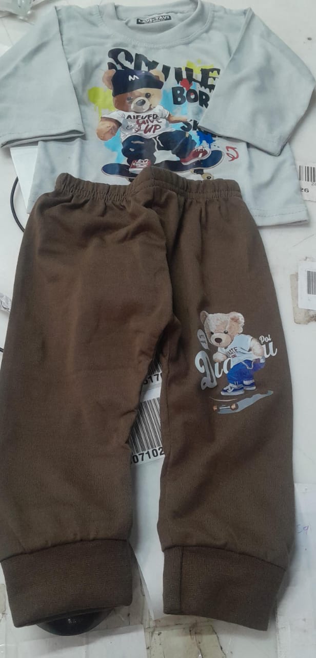 Lavi Tavi Grey Printed T Shirt And Brown Bottom Size 3 To 6 Month